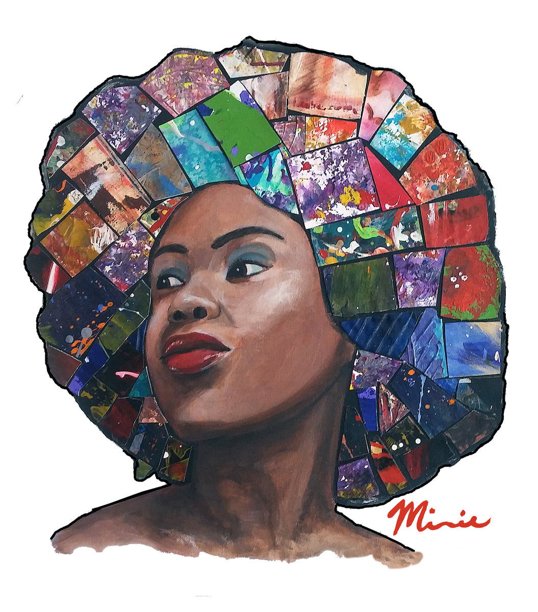 Minnie has received the 3Arts Award from the State of Illinois, and she won an executive summary writing competition held by Sunshine Enterprises. She has exhibited in The Dusable Museum (a Smithsonian Affiliate), The Museum of Contemporary Art via Command Ground Foundation, The Museum of Science and Industry, Ayzha Fine Arts Gallery (Milwaukee, Wisconsin), Gallery Guichard (Chicago, Illinois), BAM, Art Basel Week and The Harlem Fine Art Show.