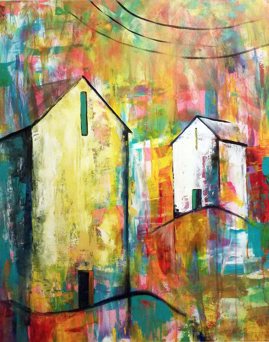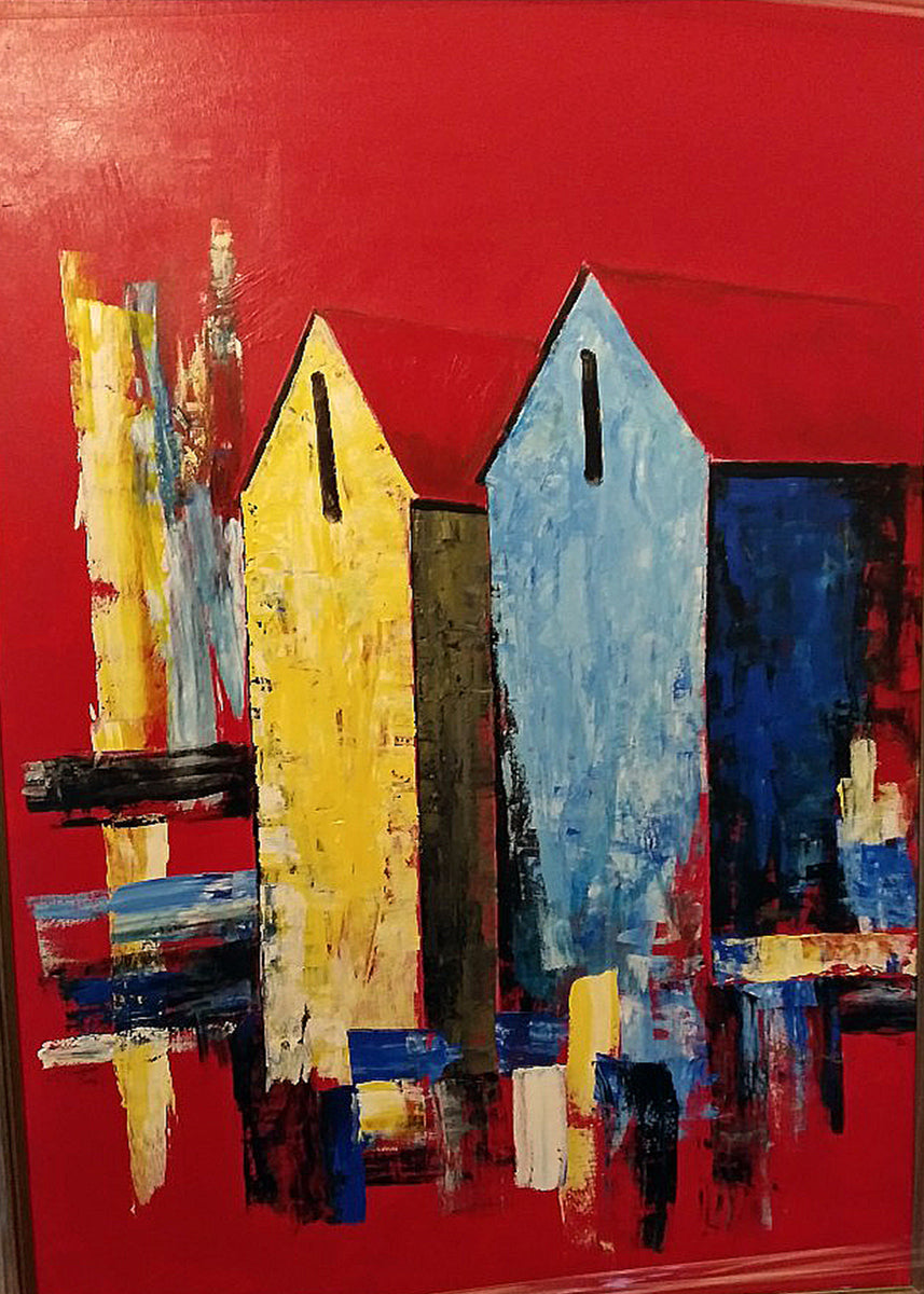 Minnie has always used abstract art as a release from the technicality of portrait painting; it is evident in her “Barn-house” paintings series. She recently had a stroke in which she suffered some temporary damage to her left side mobility. Her doctor reminded her here was more than one way to create. Minnie chose abstract as an avenue of expression.